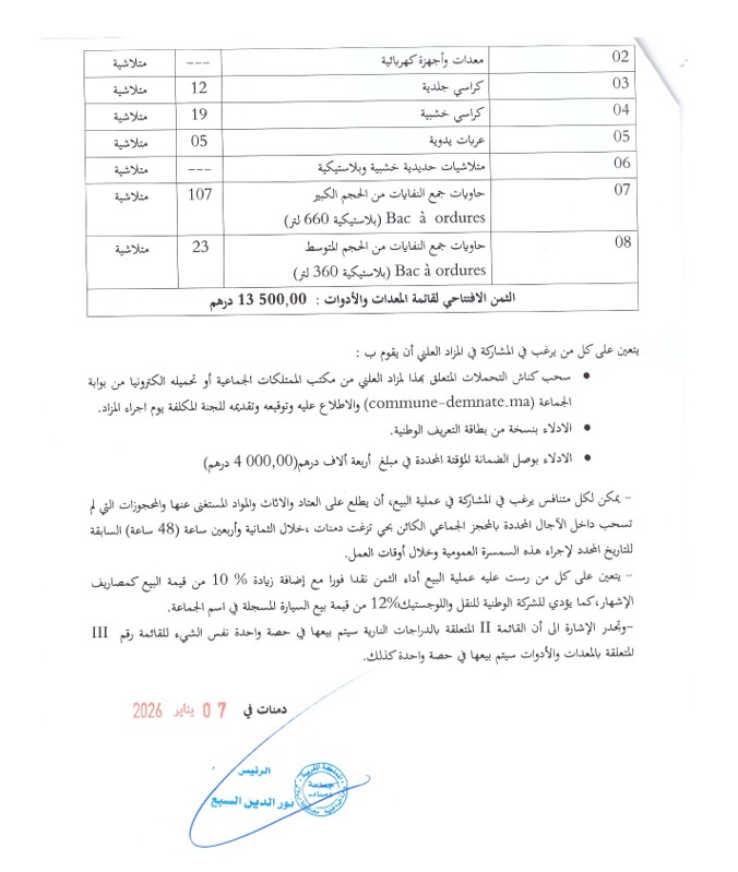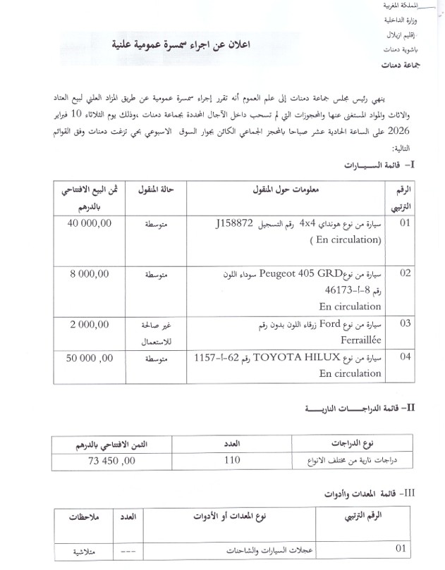 إعلان عن إجراء سمسرة عمومية علنية 2026