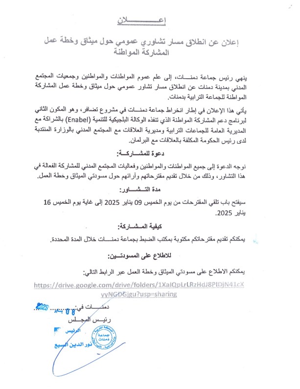 إعلان عن انطلاق مسار تشاوري عمومي حول ميثاق وخطة عمل المشاركة المواطنة